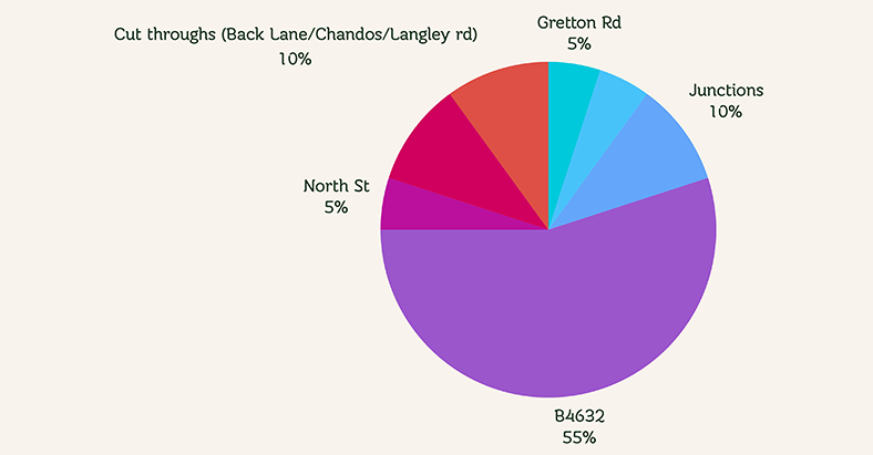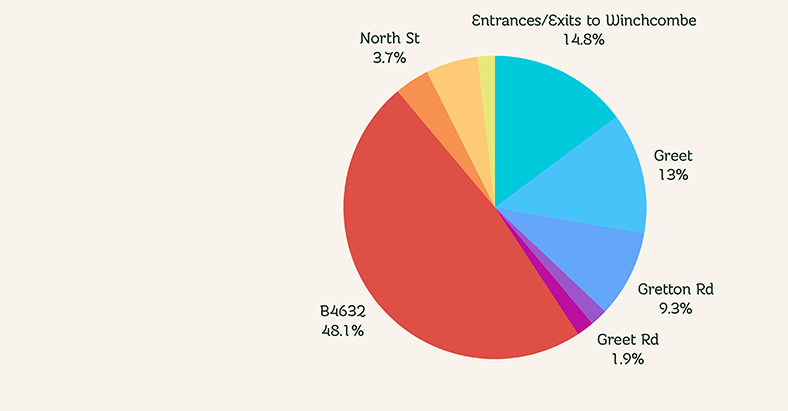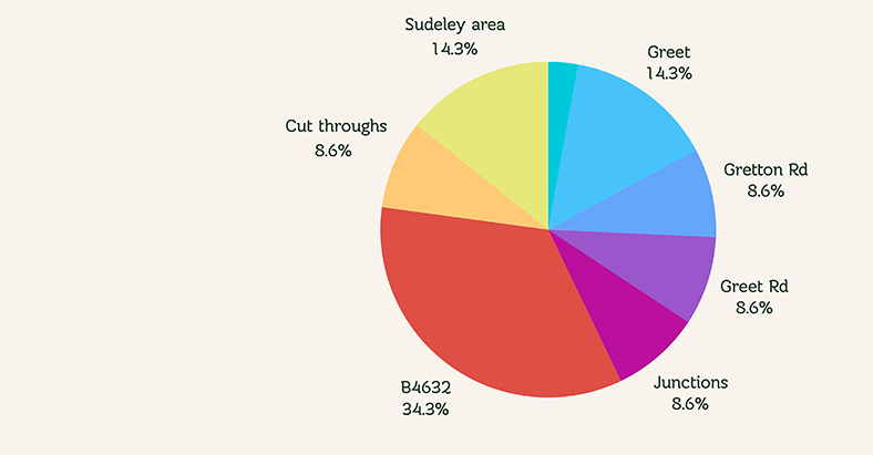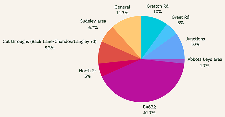 - Almost half of the responses were related to the B4632 & 13% to junctions within town